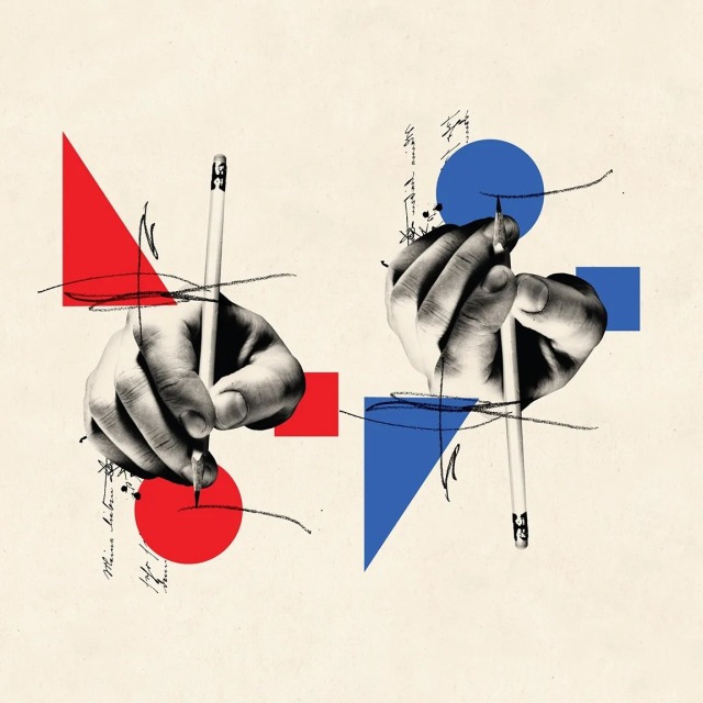 Her works are mostly created using a fairly small colour pallet, with the colours red and blue been the more dominantly used colours within her works, these colours are mostly used within the compositional shapes that are applied into her works. Then she collects the images for her works by going to places such as flea markets and travels throughout the city collecting a number of different forms, for example, newspaper titles, photographs both classic and vintage, pieces of paper, other artworks and book pages which are then merged together to make a whole new form. These are all applied onto a cream coloured background, I believe this method is effective as each component of her works are different from one another, for example, the black and white images used create a high contrast against the lighter background used and the brighter colours used within the shape further contrast helping split apart each component making it easier to look at everything and keeping everything clear which in turn makes the statement of the piece all the more clear too.