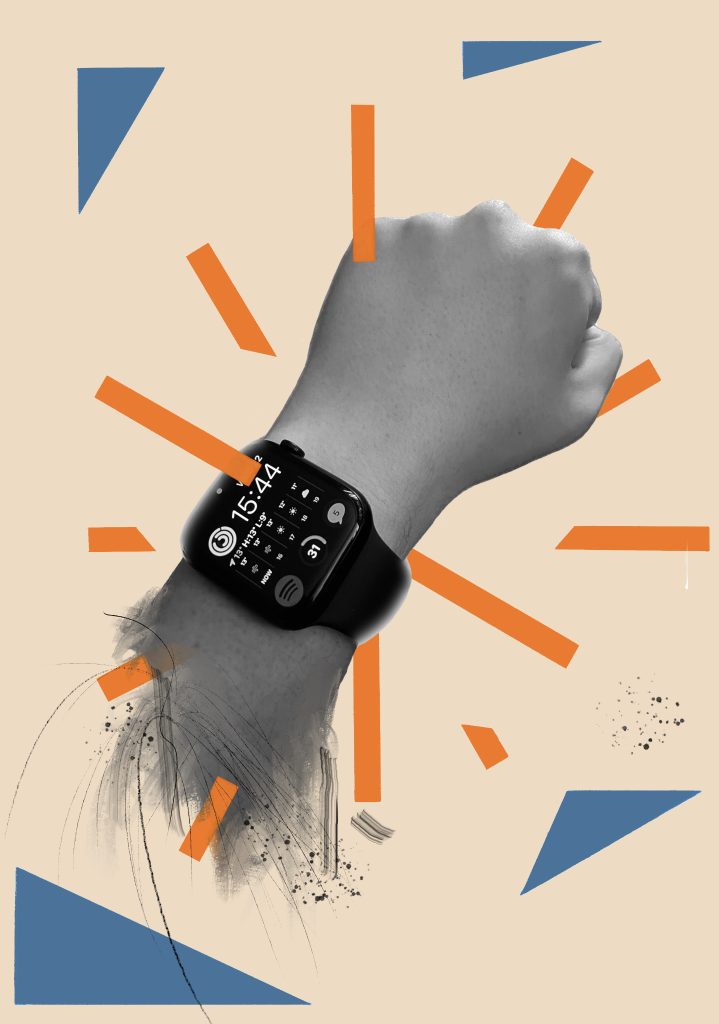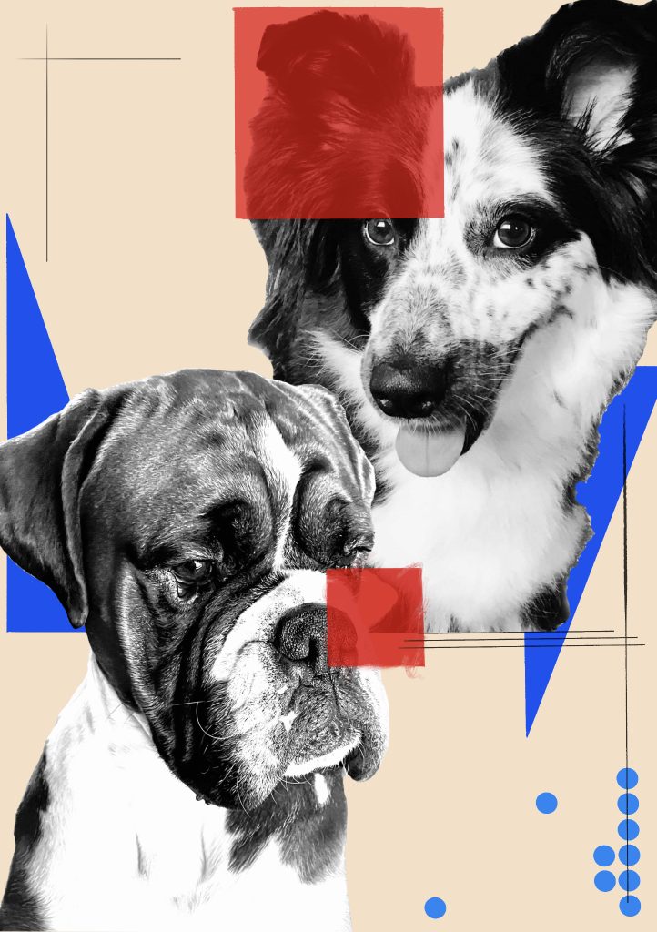 When creating my work to reflect the style of Cristiana Couceiro by using the exact same colour palette, background colour and turned the photographs I used into black and white. With the background I used that same cream like colour she does. For my image choice I chose things that were important to me, similar to what Couceiro did for her works. With the shapes in my works I placed them underneath and sometimes overlapping the photographs in a way to make it look as though it was also made using collage. The images I placed in the centre to signify their are the focus points of the piece and then placed the shapes and lines around them. I used a couple of hand drawn streaks within a few of my pieces to give them that rough look that Cristiana Couceiro incorporated into a few of her pieces. Looking at her work and seeing she makes her work based on things she likes and are apart of her life, that’s what I also tried to do too as much as I could using my own images, for example the first image includes my two dogs as they are a big part of my life and I love a lot. The second been a football as it is something that I have loved all my life and is something that has helped me get through a lot of things throughout my life. The third been my Apple Watch which is an item that I’ve been using heavily recently to track my health and aid my weight loss journey. The final piece including a photo of my and my brother as family is something I value a lot, my brothers and sister more importantly.