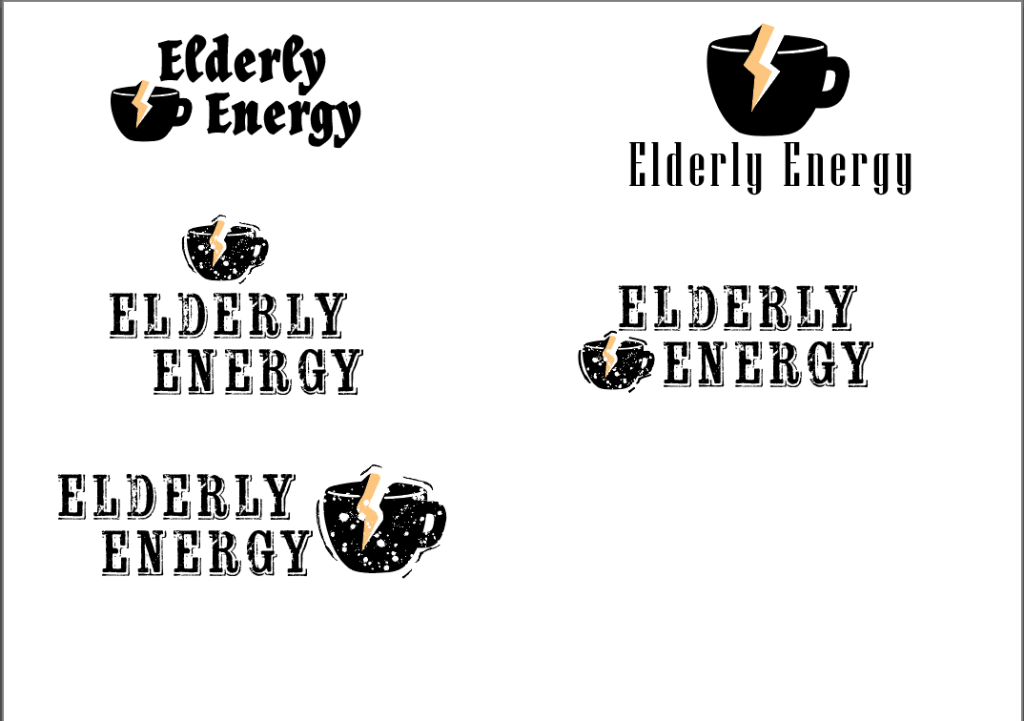 When it came to starting the create my logo for my energy drink I started by creating a page that was split in two with “Energy Drink” on one side and “Old People” on the other and then listing words or anything that could be related to them. Once I had a few words down I began creating quick and rough sketches of logos by combining something from the energy drink side and the old people side and some ideas for a conceptual logo. The route and logo that I decided to choose and expand on was the one involving the tea mug and energy symbol as I felt tea or coffee is something that is liked heavily by older people and is something that I could expand more on in my whole brand.
