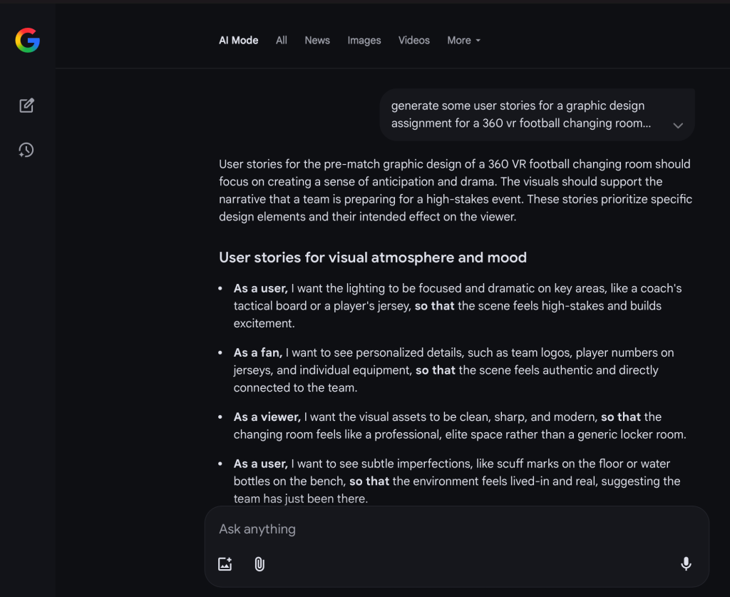 To help me come up with some scenarios of what some users needs may be I made use of AI and asked to form some examples of user stories and how I could plan to cater to the needs of these users.